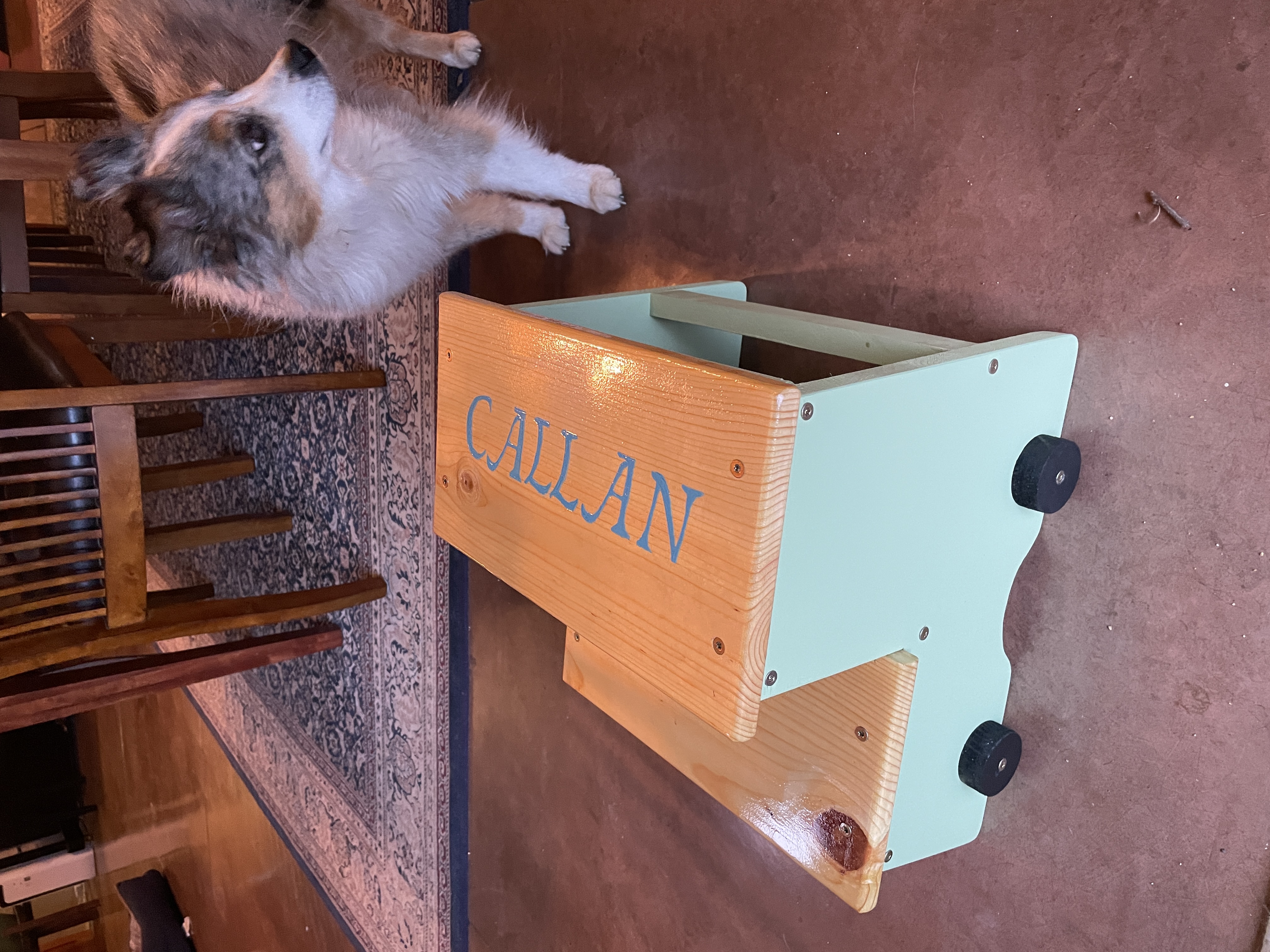 2001: Bookshelves. Pine sides and shelving (painted) with Brazilian cherry trim.